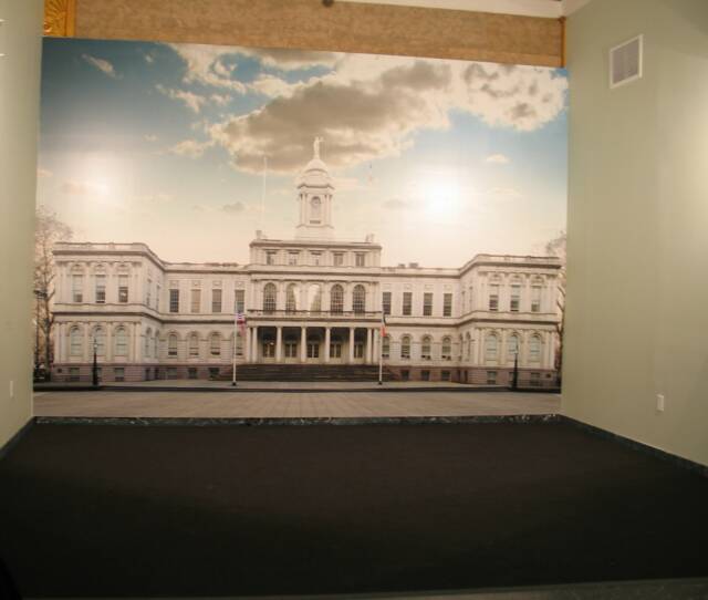 Back drop for "City Hall" wedding photos.