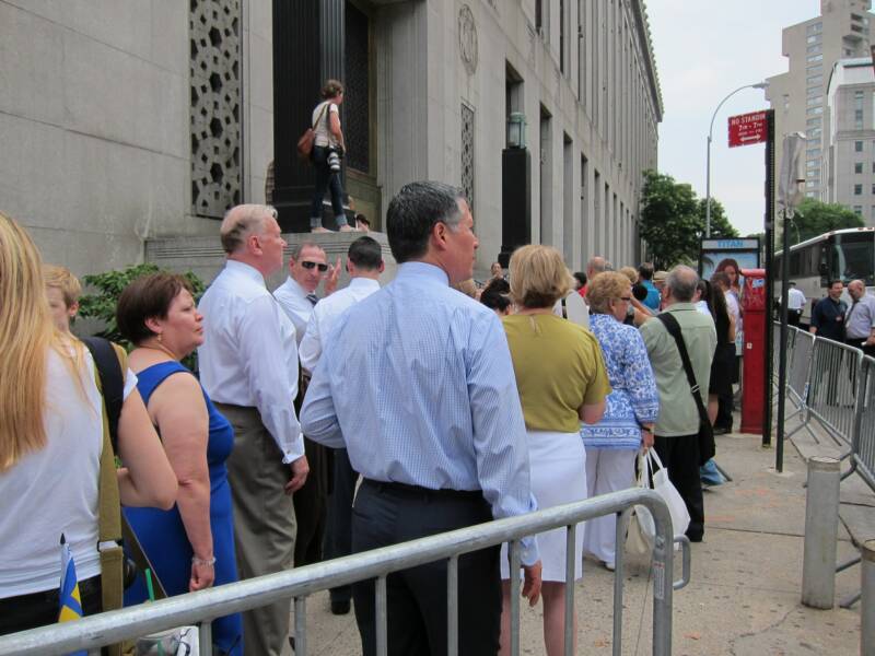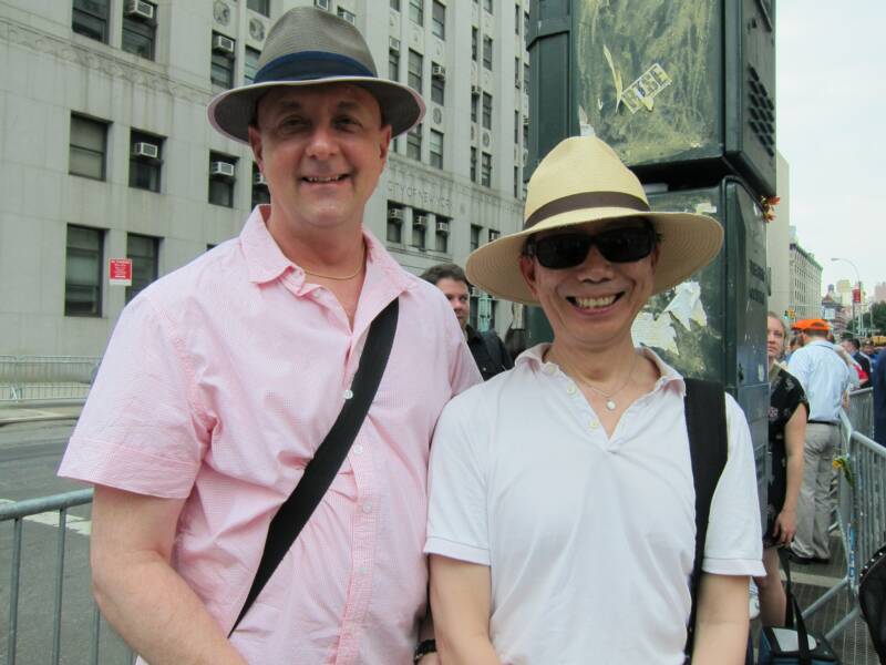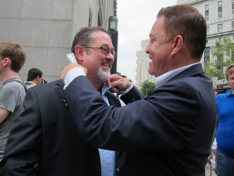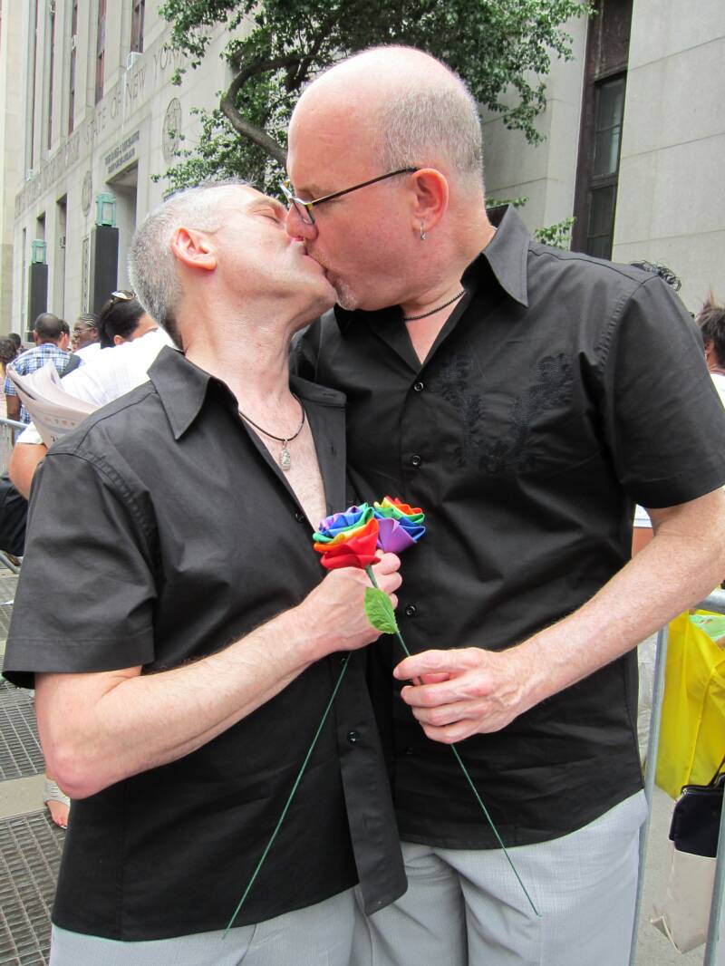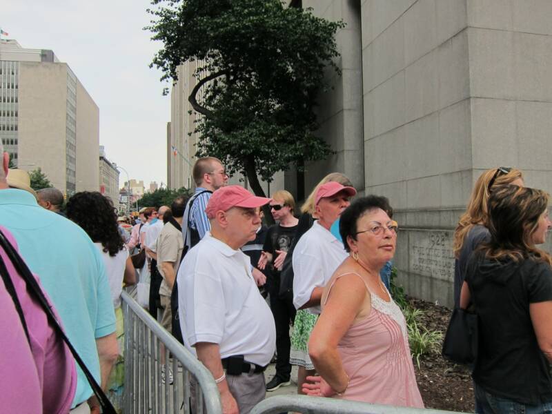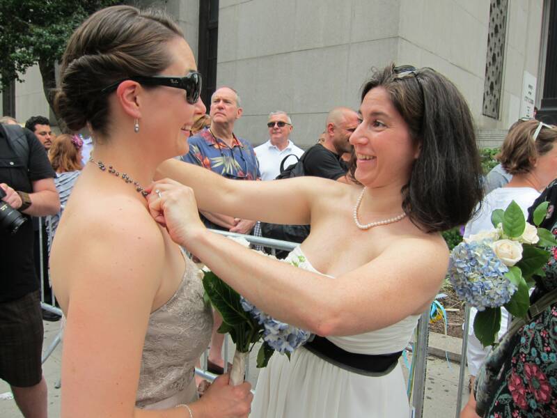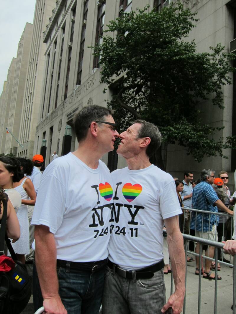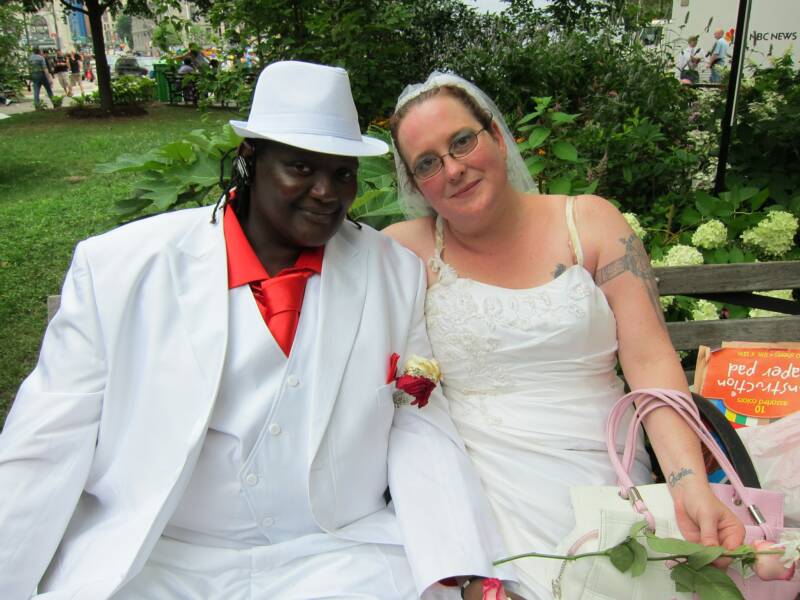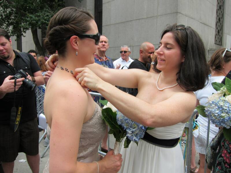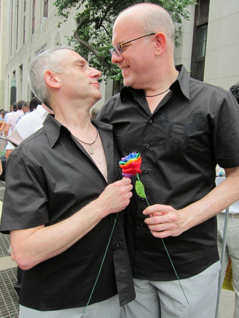 To the best of my knowledge, 484 couples were married and 175 received marriage licenses in NYC on this historic day. I was fortunate to spend Sunday, July 24, 2011 on Centre & Worth Streets meeting many of the couples and experiencing their unabashed happiness, excitement and joy as they patiently waited on line to be married or get their marriage license. As each couple who had just gotten their marriage license or gotten married exited the City Clerk's Office, they were greeted by a crowd that gathered to help them celebrate. There was cheering and applause and confetti and there was just so much joy & love in the air and, it was completely glorious.