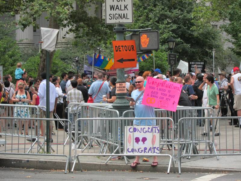 Finally, my heartfelt congratulations to every couple married on this historic day in New York .